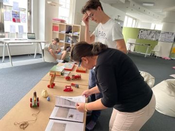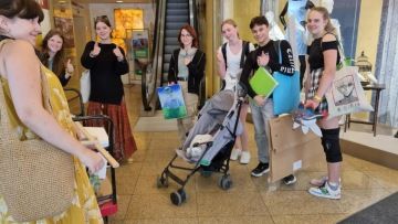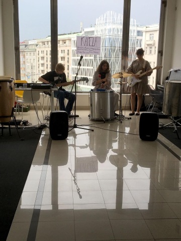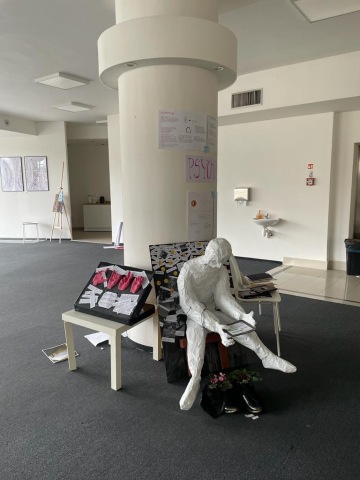 Zadruhé se jednalo o tzv. OTVOR (Otevřená TVORba). Ten probíhá dvakrát ročně. Studenti dostanou týden pro sebe, pro své zájmy, pro své záměry, pro svoji kreativitu. Většinou pracují ve škole, ale nemusí. Třeba Max si pro svůj záměr naplánoval cestu do Itálie. Studenti si počátkem týdne připravili téma, rozplánovali si práci do jednotlivých dnů a šli na to. A v pátek prezentovali. Mohli jsme slyšet podcast o motosportu, vlastní hudební i taneční kompozice našich studentů, pročíst si analýzy odborných textů z oblasti psychologie i ekonomie, vidět poster o feminismu, obrazy inspirované různými styly a třeba i ohmatat bustu Charlotty Masarykové. Ta se vezla v kočárku z UMPRUM do Domu Módy, což je vidět na fotkách. A spousta dalšího …