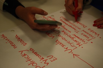 Poté jsme se rozdělili do skupin a každá dostala téma: Evropská komise, Evropský parlament a Rada EU + předsednictví. Zpracovali jsme daná témata do jednotlivých myšlenkových map, které jsme si poté vzájemně odprezentovali.