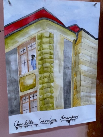 Rozhodla jsem se využít Zámek Veleslavín, abych mohla znázornit Charlottu Garrigue Masarykovou a její feministické působení v tehdejší společnosti, ale také, jak její symbolické postavení v oknu znázorňuje feminismus v současné době.