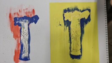 Studenti skvěle pochopili princip opakování motivů v pop-artové tvorbě A. Warhola a využili jej i ve vlastní tvorbě. Například na obrázku torza sochy (vytvořeno akrylem jako imitace sítotisku) studentka vyryla motiv do papíru, čímž po přetření barvou docílila zviditelnění.