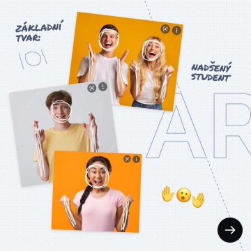 Zaměřili jsme se tedy na základní myšlenku loga - nadšeného studenta. Prozkoumali jsme referenční fotky a navrhli abstraktní tvar, který vycházel právě z těchto fotografií a měl symbolizovat nadšení a energii.