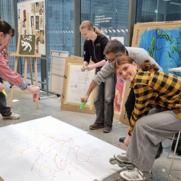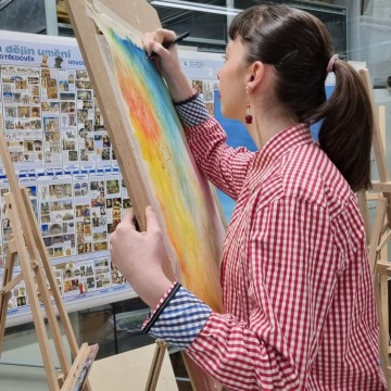 Následující část věnovaná volné tvorbě přinesla nečekané překvapení! Kája Burdová nás ohromila svým spontánním přístupem "action-moving-painting" - to je opravdu myšlení mimo rámec! Kreativní energie v místnosti byla naprosto elektrizující!